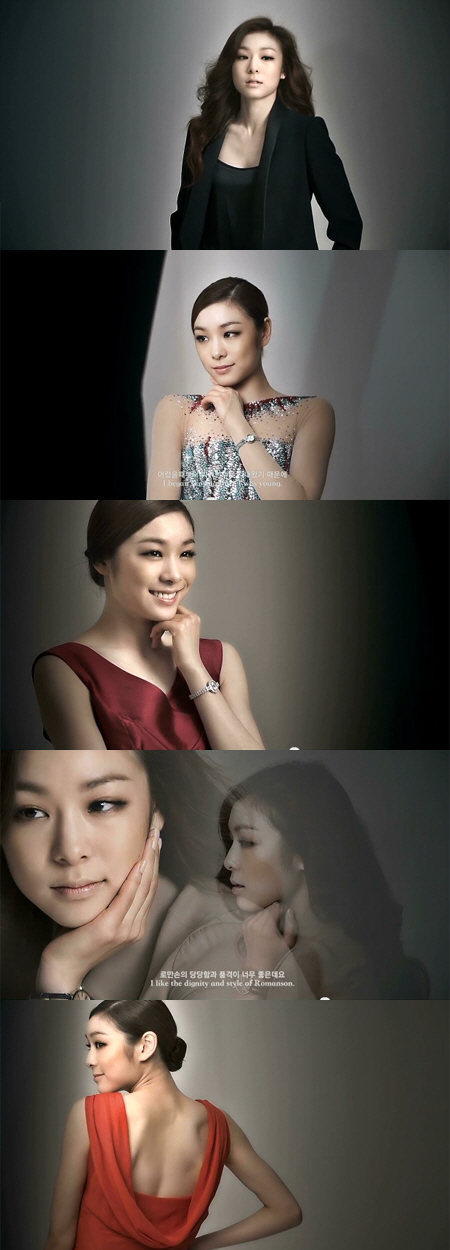남성 시계를 찬 김연아는 흰색 셔츠를 입고 그윽한 눈빛으로 카메라를 응시하는가 하면 올 블랙 슈트를 입고 시크한 매력을 발산했다. 여성 시계를 찼을 때는 등을 훤히 드러낸 과감한 드레스도 특유의 우아함으로 표현하고, 실크 블라우스에 굵은 웨이브 헤어로 지적인 스타일을 선보이기도 했다. 또한 이번 쇼트 프로그램 '뱀파이어의 키스' 의상을 입고 촬영에 나서기도 했다..
