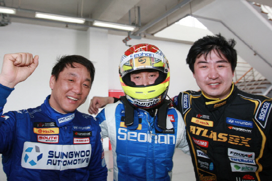| 2013 제네시스 쿠페 10 개막전에서는 3위 오일기, 1위 정의철, 2위 조항우(왼쪽부터)가 차지했다. |