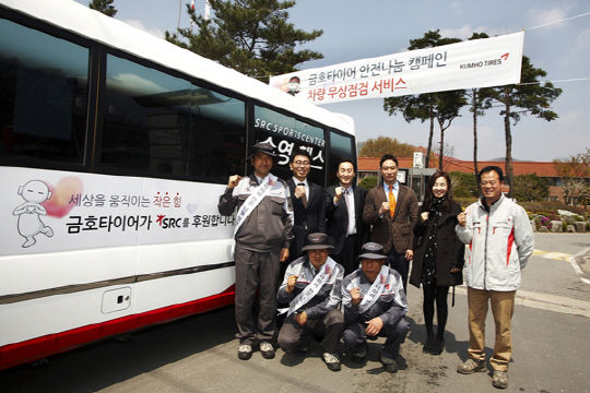 금호타이어가 장애인의 날을 기념해 사회복지법인 SRC(이하 SRC)를 방문해 차량을 무상 점검해주는 '안전나눔 캠페인'을 24일 실시했다.