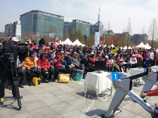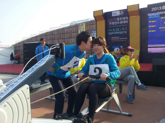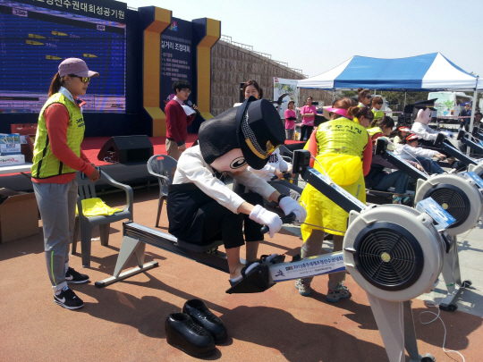 길거리조정대회는 실내조정훈련기구인 '에르고미터'를 이용해 기록을 재는 경기다. 이번 선수권대회의 홍보와 조정의 붐 조성을 위해 마련됐다.