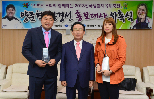 29일 경북도청 회의실에서 열린 홍보대사 위촉식에서 양준혁 위원과 황경선은 대축전의 성공개최를 위해 적극 힘쓸 것을 다짐했다.