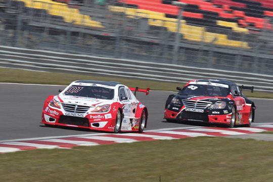 | 슈퍼6000 1위 자리를 놓고 김의수(사진 앞)와 김동은(사진 뒤)이 치열한 순위 다툼을 벌였다. |