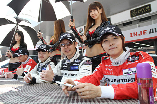 ○..5월 5일 전남영암 F1서킷에서 열린 2013 슈퍼레이스 개막전은 어린이날을 맞아 가족단위 관람객들로 북적였다. 아이들의 손을 잡고 경기장을 찾은 갤러리들은 개막식 행사는 물론 다양한 이벤트에 참여하는 등 즐거운 한 때를 보냈다. 특히 경기장을 찾은 관람객들은 개막전 피트워크 개방 타임을 가장 흥미있는 시간을 꼽았다. 피트를 구경하기 위해 찾은 갤러리들로 발 디딜 틈 없이 붐볐고 정동하(인제오토피아, 사진 오른쪽), 류시원(EXR팀106), 김진표(쉐보레 레이싱), 이화선(CJ레이싱), 이동훈(인치바이인치) 등 연예인 드라이버가 속한 팀에서는 팬 사인회 시간까지 가져 더욱 인기만발.