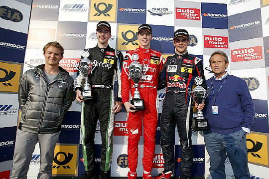 제3전 레이스3 수상자들. 왼쪽부터 2위 펠릭스 세라엘스, 1위 펠릭스 로젠퀴스트, 3위 다닐 크비아트.
