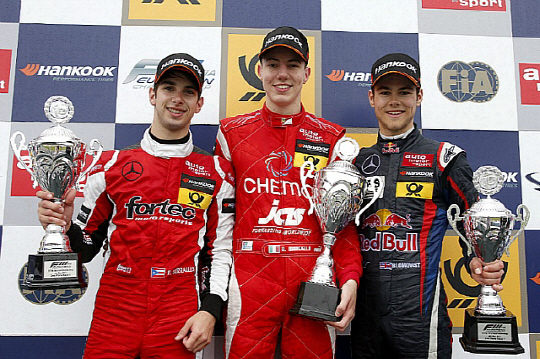 로젠퀴스트는 지난 5일 독일 호켄하임(1주 4.574km)에서 열린 제3전 레이스3에서 총 21바퀴를 35분 48초 454의 기록으로 주파하며 가장 먼저 결승선을 통과했다. 2위(+4.841초)는 펠릭스 세라엘스(20, 푸에르토리코, 포텍), 3위(+5.340초)는 다닐 크비아트(19, 러시아, 칼린)가 차지했다.