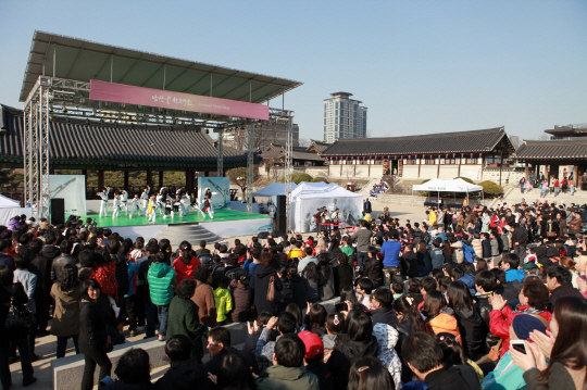 국기원태권도시범단은 남산골 한옥마을에서 정통 태권도 시범공연을 한다. 올 해 첫 공연이다.