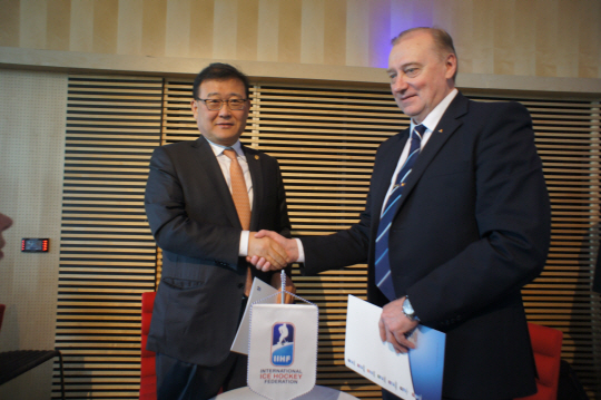 스웨덴 스톡홀름에서 열린 IIHF 연차총회에 참석한 양승준 대한아이스하키협회 전무이사는 "한국 아이스하키에 대한 평가가 달라졌다는 것을 피부로 느낄 수 있다. 과거에는 상대조차 해주지 않으려 했던 유럽 강호들이 먼저 친선 경기 개최 여부를 문의해올 정도"라고 말했다. 또 한국은 스톡홀름에서 톱 디비전에 속한 아이스하키 강국 벨라루스와 양국 협회 교류 협력과 관련된 양해 각서(MOU)를 체결했다. 벨라루스는 2012년 세계 랭킹 13위로 2002년 솔트레이크시티 올림픽에서 4위를 차지했고 2014년 세계선수권(톱 디비전)을 민스크에 유치한 전통의 강호다. 김성원 기자 newsme@sportschosun.com