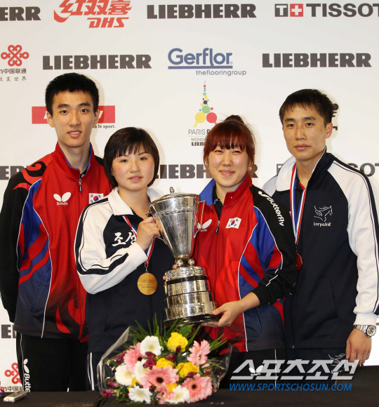 이날 오전 준결승전, 오후 결승전을 앞두고 남북은 경기장내 훈련장에서 함께 몸을 풀었다. 바로 옆테이블에서 서로의 훈련 모습을 지켜봤다. 준결승전을 앞두고 서로를 응원했지만, 결승전을 앞두고는 신경전이 치열했다. 응원석에서도 신경전은 이어졌다. 남북이 같은 응원석, 위쪽 아래쪽을 차지하고 앉았다. 북한은 아래쪽에서, 한국은 위쪽에서 열렬한 응원전을 펼쳤다. 한포인트, 한포인트… 공이 오갈 때마다 남북 응원석의 희비가 엇갈렸다. "침착하게!" "영숙아, 잘하고 있어!" "상수야, 코스 봐야지!" 이번 대회 단장을 맡은 '사라예보 신화' 정현숙 대한탁구협회 전무와 '백전노장' 강문수 대표팀 총감독은 간절했다. 런던올림픽 이후 세대교체를 감행했다. 신세대의 손끝에서 20년만의 금메달이 나오길 간절히 소망했다. 목이 쉴 만큼 열정적인 응원으로 제자들의 파이팅을 독려했다. 북한 역시 현장에서 나눠준 응원용 '딱딱이'를 일사불란하게 쳐대며 열렬한 응원전을 펼쳤다. 프랑스 파리의 중심, 경기장을 가득 메운 유럽 탁구팬들이 남북한의 대결에 숨을 죽였다. 매세트 직후 작전타임, 막간을 이용해 경기장엔 싸이의 '강남스타일'이 울려퍼졌다. 한국을 배려한 센스있는 선곡이었다. 신이 난 관중들이 '말춤' 시늉을 하며 호응했다.