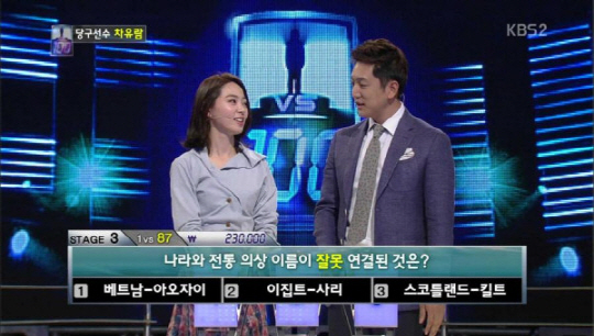 '당구여신' 차유람이 퀴즈프로그램 '1대 100'에 출연해 눈길을 끌었다.