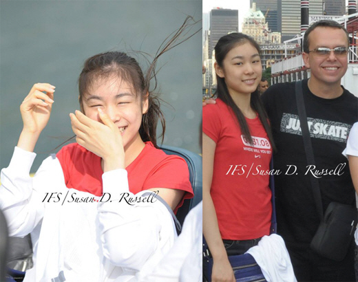 사진 속 김연아는 캐나다 토론토 하버에서 고속 모터보트를 타고 신이 난 모습. 긴 머리를 휘날리며 바람을 느끼고 있는 김연아는 귀여운 눈웃음으로 시선을 모았다. 또 다른 사진 속 앳된 얼굴의 김연아는 안무가 데이비드 윌슨과 다정히 어깨동무를 한 채 미소를 짓고 있다.