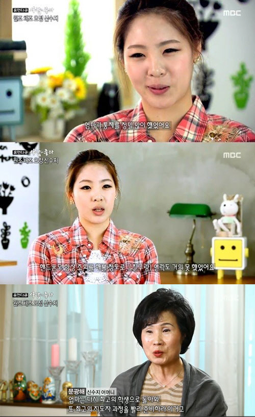 이에 대해 신수지 어머니는 "엄마는 다시 최고의 학생으로 돌아와 또 최고의 지도자 과정을 빨리 준비하라는 거고, 아이는 나한테 숨 쉴 시간 좀 달라는 거였다. (수지는) 단 한 번도 엠티도 못가고 소풍도 못 가본 애다. 세상을 좀 즐길 시간을 달라는데 엄마는 그 시간조차 초조한 거다"고 당시 심경을 전했다. 이어 "뒤늦게 내가 철이 나면서 아이를 이해하게 됐다"고 털어놨다.