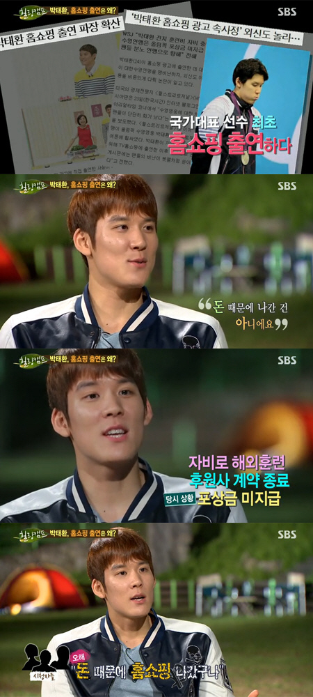 이날 박태환은 "홈쇼핑에 출연하면 돈 주는 것도 몰랐다. 기사를 보고 알았다"고 털어놨다.