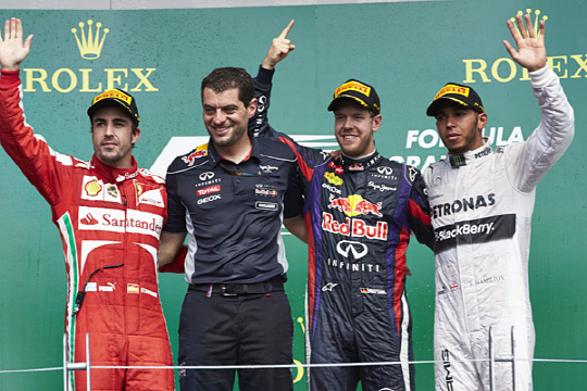 랭킹 포인트 25점을 획득한 베텔은 7라운드까지 누적 포인트 132점을 얻어 2위 알론소(96점)보다 36점 앞서 3년연속 월드챔피언의 확률을 높였다.