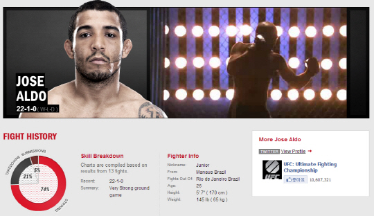 알도는 2004년 8월 데뷔한 이래 23경기를 치르면서 단 1패를 당한 명실상부 페더급 세계 최강자다.