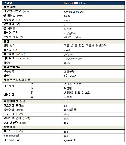 폭스바겐 폴로 1.6 TDI R라인은 폭스바겐 골프의 동생 폴로답다. 달리는 즐거움과 연비 효율성까지 내외관 모두 딱 폴로의 형님 골프를 닮았다.