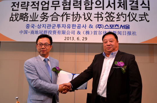 코스닥 상장기업인 (주)스포츠서울과 중국의 상지관군투자유한공사가 29일 전략적 업무협력에 합의하고 합의서를 교환했다.