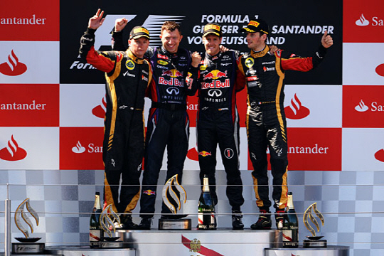 4연속 '월드 챔피언' 달성을 향해 순항하고 있는 베텔은 개인 통산 30번째 우승을 달성은 홈무대인 독일 그랑프리에서 처음으로 우승을 차지해 포디움 시상식에서 기쁜 얼굴로 트로피를 들어올렸다.