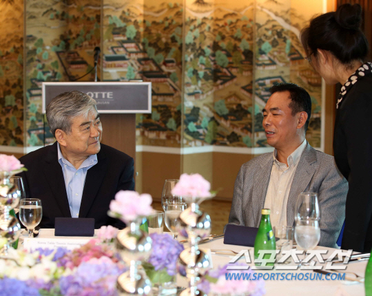 지난 1일 조 회장과 1시간 가까이 탁구 현안에 대해 환담을 나눴다. 2009년부터 탁구협회장을 맡아온 조 회장의 탁구사랑은 이름높다. 단순한 관심이나 형식적 지원 차원을 넘어선다. 부산아시아선수권 현장을 직접 찾아 차이전화 회장을 만났다. 세계 탁구계 동향과 한국탁구의 미래를 살뜰히 살폈다. 차이전화 회장은 ATTU 부회장으로 일해온 조 회장에 대해 "능력있는 분이다. 탁구에 대한 열정과 추진력을 존경한다"며 친근감을 표했다. "조 회장님과 아시아 탁구 전체의 발전을 위해 해야할 일들을 다각도로 얘기했다. 모든 문제들을 하나하나 상의했다"고 덧붙였다. 조 회장은 현재 중국이 독주하고 있는 세계 탁구 현실을 냉정하게 짚었다. "세계 각국에 흩어진 중국 귀화선수들이 유럽, 아시아각국 대표선수로 활약한다. 올림픽 무대에서 국가간 민족간 경쟁이 아닌 중국선수간 경쟁이 이어지고 있다. 퇴출이 거론되는 이유"라고 위기감을 표했다. 수십년간 중국이 독점해온 녹색 테이블에 과감한 변화의 필요성을 역설했다. 차이전화 회장 역시 공감했다. 한-중 대표팀간 교류를 약속했다. 지금껏 '난공불락' 중국대표팀의 훈련지와 훈련방법은 그들만의 성역으로 통했다. 차이전화 회장은 기술 개방의 뜻을 표했다. "한중 국가대표팀 선수-코치 교류를 2년에 1번씩, 열흘 정도 하는 방안을 추진할 예정"이라고 밝혔다. "교류를 통해 양국의 친선을 도모하고, 건전한 라이벌 구도를 형성할 수 있도록 하겠다"고 했다. "태권도의 경우 한국 지도자들이 전세계에 진출해 있다. 세계 태권도 수준이 바람직하게 평준화되고 있다. 마찬가지로 중국 탁구코치들도 전세계로 퍼져나가고 있지만, 향후 이를 더욱 확대해나갈 계획"이라고 밝혔다.