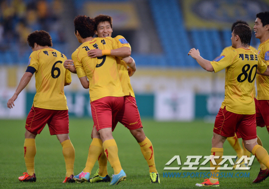 김동섭과 김태환은 1989년생 동갑내기, 뱀띠 절친이다. 런던올림픽 예선전에서 함께 발을 맞췄지만, 최종 엔트리에선 고배를 마셨다. 또래들이 환호했던 2012년은 이들에게 가장 아픈 시기였다. 안익수 성남 감독이 대놓고 "올림픽 낙방생"이라고 농담하는 이들은 올시즌 성남 공격의 핵이다. 1년새 더 강인해졌다. 함께 브라질월드컵 무대를 꿈꾸고 있다. 김동섭은 클래식에서 5골을 터뜨렸다. 팀내 최다 득점자다. 김태환은 16경기에서 1골3도움을 기록중이다. 성남의 스피드 축구를 이끄는 파워 엔진이다. 경기 직전 황선홍 포항 감독 역시 "성남은 김태환-박진포로 이어지는 오른쪽 라인이 무섭다"고 경계했을 정도다. 김태환의 올시즌 3도움은 모두 김동섭을 향했다. FA컵에서도 이들의 호흡은 여지없이 통했다.
