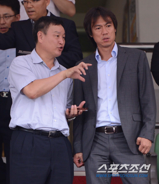 홍 감독은 이날 1층 VIP석에 허정무 대한축구협회 부회장 등 관계자들과 나란히 앉았다. 120분 경기 내내 '매의 눈'으로 선수들을 관찰했다. 하프타임, 홍 감독을 알아본 축구팬들의 플래시 세례가 이어졌다. 사진촬영 요청에 일일이 웃는 얼굴로 응했다. 때마침 몰려든 기자들의 질문 공세엔 입을 굳게 닫았다. "내일 명단이 발표될 겁니다. 오늘은 질문에 답하지 않겠습니다." 정중하게 거절했다. '홍명보호 1기' 명단은 이미 그의 머릿속에 있다.