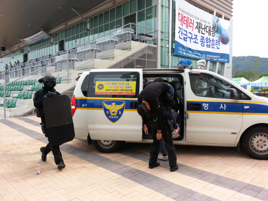 시나리오는 이랬다. 충주 탄금호 국제조정경기장에 국제 테러단체가 침투해 경찰과 군부대가 즉각 출동하는 초유의 사태가 발생했다. 대치 과정에서 그랜드스탠드와 마리나센터가 테러에 의해 폭발되면서 화재가 발생, 다수의 사상자와 함께 경기장 일대가 아수라장으로 변했다. 신고를 받고 출동한 군경은 치누크헬기 등을 동원한 육·해·공 입체 작전을 펼쳐 테러범을 완전 진압한 후 현재 경기장 주변경비를 강화 중에 있다.