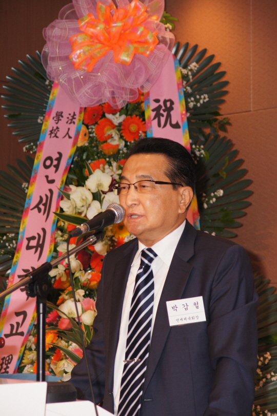 | ◇만장일치로 제24대 연세체육회장에 재선출된 박갑철 회장. 사진제공=연세체육회 |