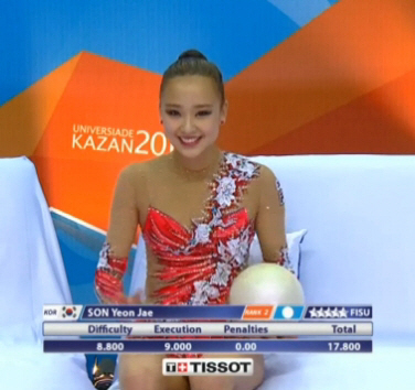 '리듬체조 요정' 손연재(19·연세대)가 제27회 카잔 하계유니버시아드대회에서 개인종합 볼 3위, 후프 9위에 올랐다. 볼에서의 선전이 빛났지만, 후프에서의 실수는 아쉬웠다.