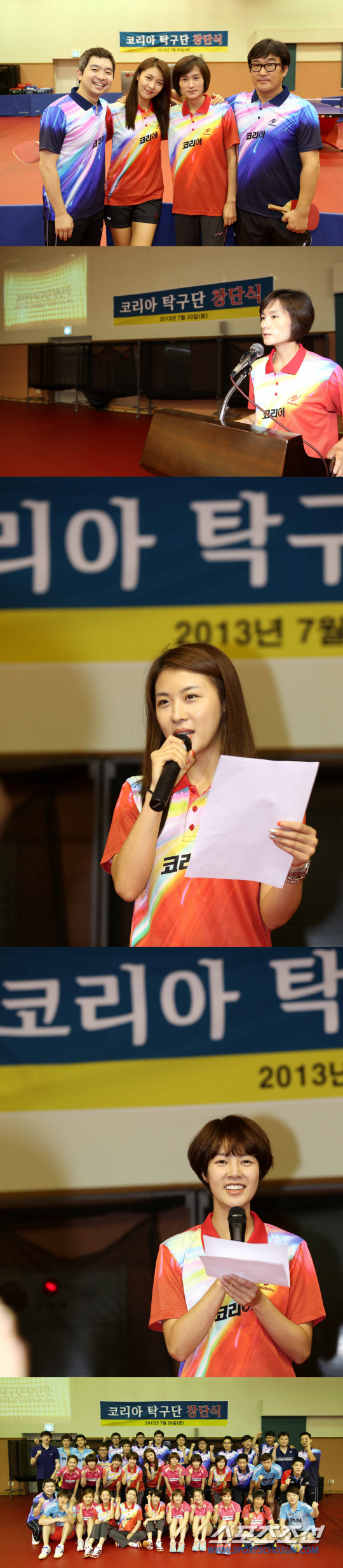 이날 하지원은 1년만에 '탁구 에이스'로 다시 변신했다. 창단식에서 코리아 마크가 새겨진 티셔츠를 입고, 선수대표로 나섰다."이 체육관에 다시 오니 '코리아'라는 영화가 맺어준 인연에 대한 소중함이 새삼 가슴에 와닿는 것같아요. '코리아'로 엮어진 이 인연을 소중히 간직하고 예쁘게 가꿔나가겠습니다." 공감의 박수가 쏟아졌다. 향후 코리아팀의 계획을 또박또박 읽어내렸다. "2013년은 실력배양의 해입니다. 2014년부터 경기중심의 탁구단을 운영하면서 아시안게임, 올림픽 등 국가대표 출전 대회를 응원 및 지원하고요. 현정화 감독님이 제일 중시하시는 남북의 평화통일을 위한 국내 및 해외 팀들과 장기교류전, 북한 장애인 돕기 친선경기, 지바조선학교및 사회팀과의 경기를 추진할 예정입니다."