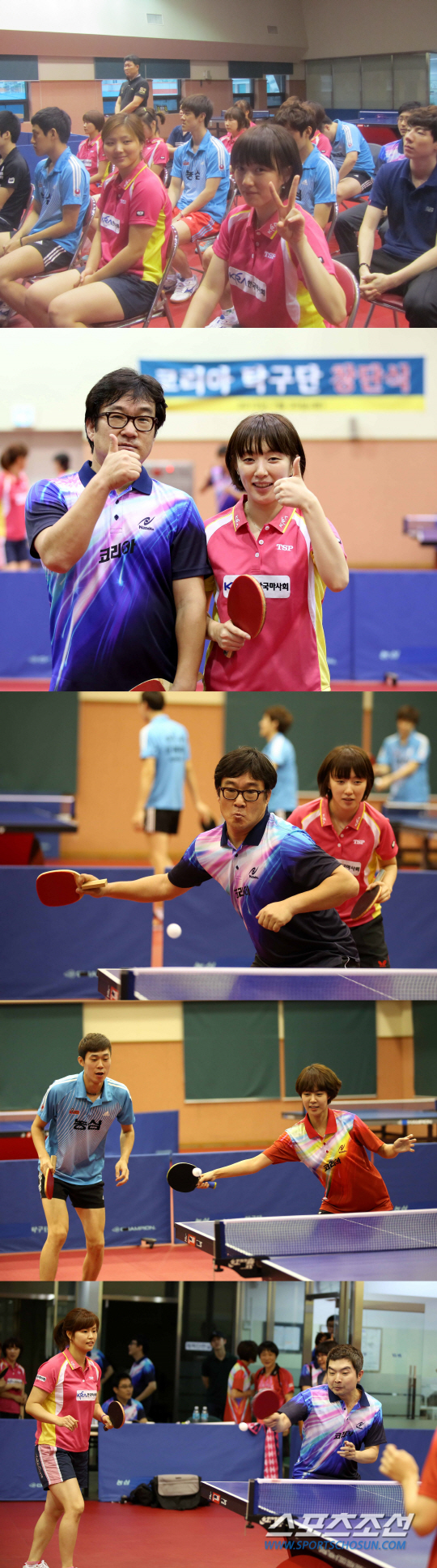 ◇영화 '코리아' 제작자인 이수남 더타워픽쳐스 대표는 '코리아 탁구단' 감독을 맡았다. 창단식 직후 이벤트 매치에서 '탁구얼짱' 서효원과 한팀을 이뤄 우승했다. 극중 홍차옥 역할을 맡았던 최윤영은 남자대표팀 왼손에이스 이정우와 짝을 이뤘다. 남다른 탁구실력을 자랑하는 문현성 감독은 김숭실 코치와 한팀이 됐다. 사진제공=월간탁구 안성호 기자