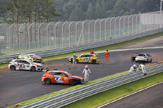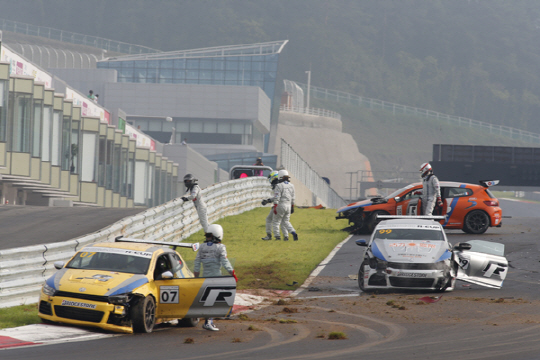 지난 10일 강원도 인제스피디움에서 열린 '폭스바겐 시로코 R 컵' 4라운드 경기 도중 최악의 9중 충돌사고가 일어났다.