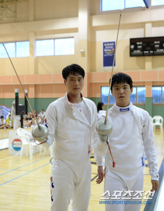 제3회 한미대학펜싱선수권(2013KUEFI)이 13일부터 15일까지 2박3일간 제주도 서귀포 한국국제학교(KIS) 제주 캠퍼스 체육관에서 펼쳐졌다. 한국대학펜싱연맹이 주최하고 스포츠조선, (주)로러스엔터프라이즈가 주관하는 이 대회는 한국의 엘리트 선수들과 미국 명문대 학생선수들이 매년 한국에 모여 실력을 겨루고 우정을 나누는 소통의 무대다. 남자 에페 우승을 차지한 송태양(오른쪽)과 준우승을 차지한 김기현이 함께 포즈를 취하고 있다. 제주=송정헌 기자 songs@sportschosun.com