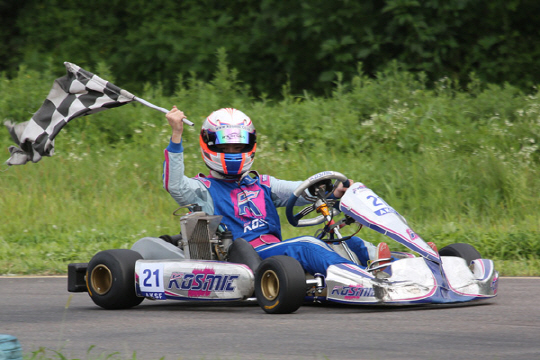 | 피노카트팀은 김학겸-정찬욱-김정태 조가 경기초반부터 압도적인 스피드로 끝까지 순위를 지켜내며 2시간 동안 총 130바퀴를 돌아 로탁스(125cc)종목에서 우승을 차지했다. |