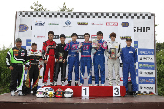 | 제2회 아시안카트썸머페스티벌 로탁스 클래스 입상자들. 왼쪽부터 2위 F5-몬터스OB(김태훈-노동기-이형민-김민규), 1위 피노카트(정찬욱, 김정태, 김학겸), 3위 피노카트(서주원-이득희). |