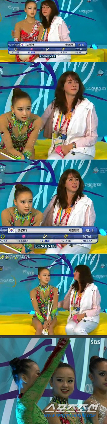 마지막 순서인 손연재의 곤봉연기가 끝난 직후 심판들은 숙고했다. 최종점수 발표까지 시간이 꽤 걸렸다. 손연재는 초조하게 점수를 기다렸다. 손연재와 코치의 표정에서 피말리는 긴장감이 그대로 드러난다. 17.350점, 총점 70.332점이었다. 0.042점차로 사상 최고의 성적 '4위'를 놓쳤다.