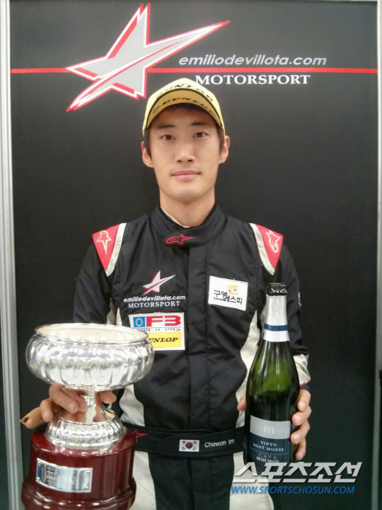 ◇임채원이 7일 유러피안 F3 12라운드에서 F308 클래스 2위를 차지했다. 경기 후 트로피와 샴페인을 들고 있는 임채원. 사진제공=올댓스포츠