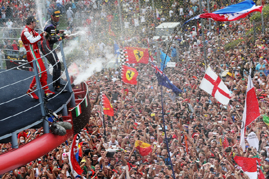 2위 페르난도 알론소(페라리)는 베텔에 5.467초 뒤진 기록으로 2위를 차지했다. 벨기에 그랑프리에서 베텔에 이어 2위를 차지했던 알론소는 이번 이탈리아 그랑프리에서도 마찬가지 결과를 얻었다. 베텔의 팀 동료 마크 웨버는 3위를 기록했다.
