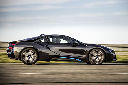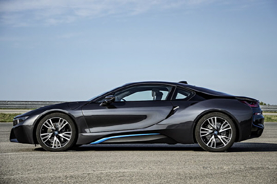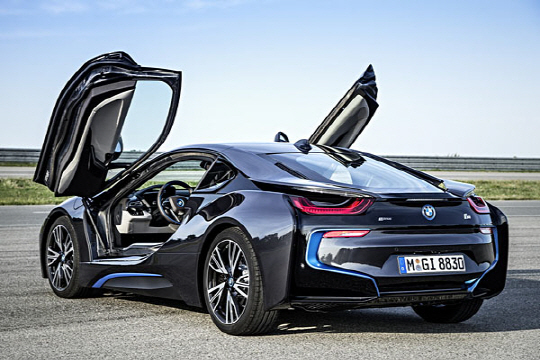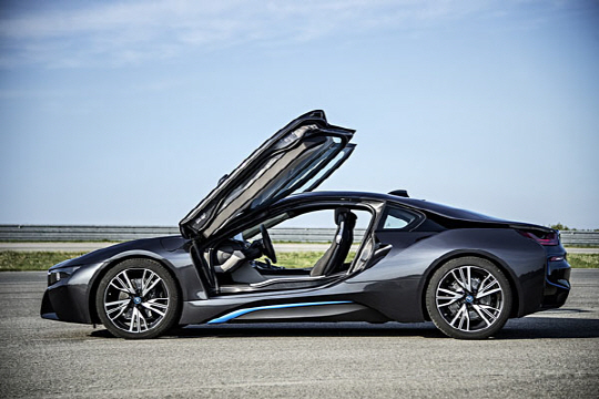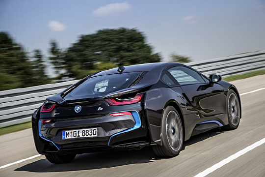BMW가 오는 22일까지 열흘간 열리는 2013 프랑크푸르트 모터쇼에서 선보인 i8 스포츠카. '플러그인 하이브리드' i8은 최대 220마력과 30.6kg.m 토크를 발휘하는 고성능 3기통 모델로 유럽 기준 리터당 약 37km의 연비를 자랑하는 효율성 또한 갖췄고, 정지상태에서 100km/h까지는 4.6초. 대형 리튬이온 배터리 1회충전으로 35km까지 이동할 수 있다.