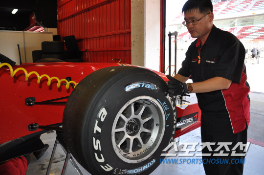 머신이 질주를 한 후 피트로 들어오자 금호타이어 연구원들은 데이터를 계속 확인하며 타이어의 마모도, 온도 등 외관을 측정했다. F1 타이어 필드 테스트가 열리는 첫 날이지만, 타이어 셋업에 이은 핸들조향성, 내구성 실험 등이 차질없이 순차적으로 진행되고 있었다.