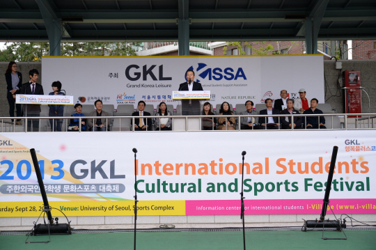 28일 서울 동대문구에 위치한 서울시립대에서는 뜻깊은 행사가 열렸다. 70개국 2000여명의 외국인 유학생이 참가한 가운데 2013 주한 외국인 유학생 문화 스포츠 대축제가 열렸다. 그랜드코리아레저(GKL· 대표 임병수)와 주한유학생지원협의회(KISSA · 회장 유경의)가 개최한 이번 행사에서는 축구, 농구, 크리켓 등의 운동 종목과 줄다리기, 투호, 널뛰기와 같은 한국 전통민속놀이이가 진행됐다. 국내에서 공부하고 있는 외국인 유학생들의 화합과 우정을 다지기 위해 마련된 이번 행사는 2011년 처음 개최되어 올해로 4회를 맞았다.