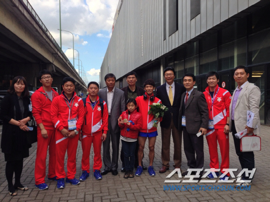 ◇양학선의 세계선수권 2연패는 현지 교민들에게도 어깨를 으쓱할 만큼 자랑거리가 됐다. 양학선, 김대원 대한 체조협회 전무 주영삼 감독 등 대한체조협회 관계자들과 김창범 주벨기에 유럽연합 대사 및 대사관 직원들이 금메달 쾌거를 자축하는 기념 사진을 찍었다.