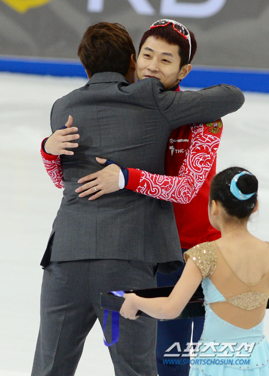 2013-2014 ISU 월드컵 쇼트트랙대회 남자 1000미터 결승전이 6일 오후 목동 빙상장에서 열렸다. 은메달을 목에 건 안현수가 시상자로 나선 김동성과 포옹을 하고 있다. 목동=정재근기자 cjg@sportschosun.com/2013.10.06/ | |