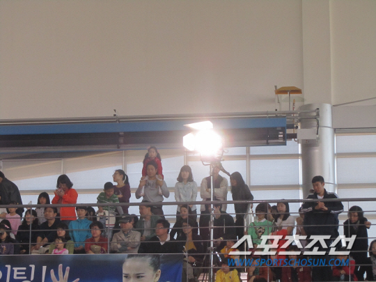더 큰 문제는 2층에 위치한 협소한 관중석이었다. 손연재를 보기 위해 수백 명의 팬들이 한꺼번에 몰려들었다. 500석의 관중석은 턱없이 부족했다. 손연재의 인기도, 관심도로 미뤄볼 때 만원관중은 일찌감치 예고됐었다. 착석한 관중보다 관중석 뒤, 관중석 사이 계단에 선 채로 경기를 지켜보는 팬들이 훨씬 많았다. 심지어 농구 골대 높이에 맞춰진 관중석은 선수들이 연기하는 포디움과는 완전히 동떨어져 있었다. 시장님이 옹색하게 끼어앉은, 다닥다닥 붙은 관중석은 보기에도 안쓰러웠다. '연재언니'를 보기 위해 아빠 엄마를 따라 경기장을 찾은 어린이 팬들이 철제 펜스 사이로 얼굴을 빼꼼 내민 채 경기를 지켜보는 모습은 아찔했다. 2층 관중석에선 안전요원 하나 찾아볼 수 없었다.