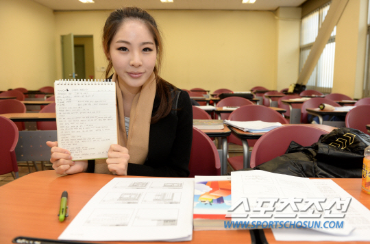 '원조 리듬체조 요정' 신수지(22·세종대 대학원)는 요즘 눈코뜰새 없이 바쁘다. 2008년 베이징올림픽, 한국 리듬체조 최초로 자력 본선행을 이뤘다. 손연재의 길을 한발 앞서 걸어간 리듬체조 스타는 2년 전 스무살의 나이에 전격은퇴를 선언했다. 이후 제2의 인생을 활기차게 열어가고 있다. 예능 프로그램 '해피타임(MBC)' MC로 1년 가까이 활약중이다. 패션업체와 함께 '신수지백'도 출시했다. 취미로 볼링 골프 승마를 즐긴다. 현역시절 세계를 놀라게 한 신수지의 전매특허, '일루션 시구'는 메이저리그 홈페이지에 소개될 만큼 세계적인 이슈가 됐다. 여자 동호인 야구팀 '떴다볼'의 멤버다. 그러나 그녀에게 가장 중요한 일은 '공부'다. 세종대 대학원에서 2학기째 '열공중'이다. 그녀의 수업 현장을 직접 찾았다.