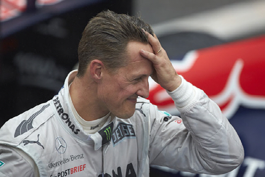 O.. '포뮬러 원(F1) 황제'로 불리는 미하엘 슈마허(44·독일)가 현역 복귀 제안을 거절했다. 독일의 신문 빌트는 14일 "슈마허가 로터스 팀으로부터 이번 시즌 남은 두 차례 경주에 드라이버로 출전해달라는 제안을 받았지만 이를 사양했다"고 보도했다. 로터스는 이번 시즌 키미 라이코넨(핀란드)과 로맹 그로장(프랑스) 등 두 명의 드라이버를 기용했으나 라이코넨이 허리 부상 탓에 남은 두 차례 경주에 출전할 수 없는 상황이다.
