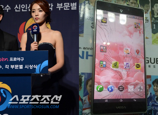 KBS N 스포츠 정인영 아나운서의 핸드폰이 파손됐다.