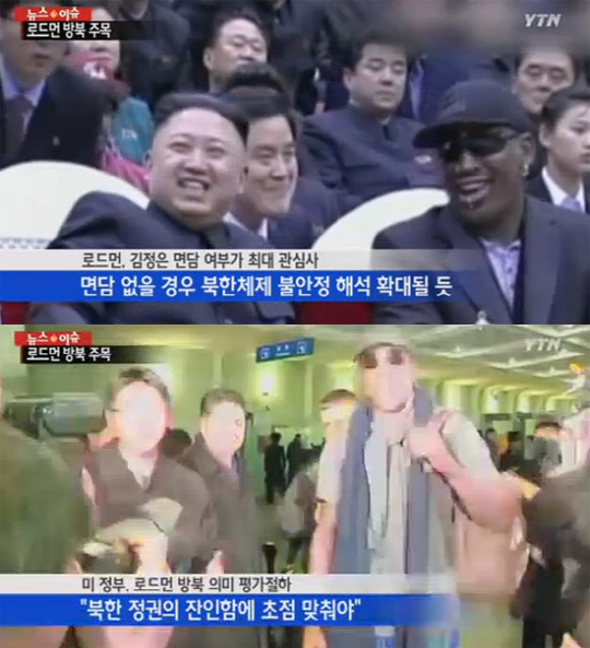 한편 로드먼의 북한 방문은 올해 2월, 9월에 이어 세 번째로, 그는 오는 23일까지 평양에 머물며 북한 농구팀을 훈련할 계획이다.