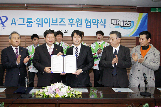 웨이브즈는 지난 23일 서울 강남구 삼성동에 있는 에이플러스빌딩에서 웨이브즈 김홍일 대표와 선수단, 에이플러스 그룹 곽근호 회장 및 임직원과 대한아이스하키협회 임직원 등이 참석한 가운데 보험비교 판매회사인 에이플러스그룹과 후원 협약식을 가졌다. 웨이브즈가 에이플러스 그룹에게 받는 후원금은 5년간 10억원이다.