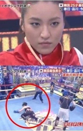 윤형빈이 언급한 사건은 국내 여성 격투기선수 임수정과 관련됐다. 임수정은 지난 2011년 7월, 일본 민방 TBS의 한 예능프로그램에 출연해 일본 남자 개그맨 3명과 불공정한 격투를 벌여 무차별 공격을 당한 끝에 전치 8주 부상을 당했다. 특히 남자 출연자들은 보호장비를 전혀 착용하지 않은 임수정을 구타에 가까울 정도로 공격해 논란이 됐다.