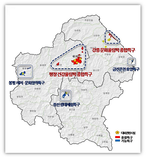 이에 따라 관광·문화·주거·산업 기능이 융복합된 '올림픽 명품도시'인 평창 동계올림픽 특구 개발이 시작된다. 이날 정부가 승인한 평창동계올림픽특구는 평창동계올림픽 및 장애인동계올림픽 지원 등에 관한 특별법(이하 대회지원 특별법)에 근거한 것이다. 특구 지정은 성공적인 올림픽 개최를 지원하고, 대회 이후에도 개최지의 지속가능한 발전을 추진하기 위한 것으로, 올림픽이 개최되는 평창과 강릉, 정선 일원에서 27.4㎢ 규모(여의도 면적 2.9㎢의 9.5배)로 추진된다. 평창 건강올림픽 특구(평창군 대관령·진부면 일원) 강릉 문화올림픽 특구(강릉시 교동 일원) 봉평 레저·문화창작 특구(평창군 봉평면 일원) 금진온천 휴양특구(강릉시 옥계면 일원) 정선 생태체험 특구(정선군 북평면 일원) 등 5개 특구가 지정됐다. 공공과 민간이 병행해 개발을 진행하며, 향후 20년간 총 3조 3063억 원의 사업비가 투입될 계획이다. 국토연구원에 따르면 특구의 지정 및 조성에 따른 경제적 파급효과는 20년간 지역 내 총생산 증가 10조 4683억 원(연평균 5234억 원), 고용유발 효과 26만 4390명(연평균 1만 3220명)에 이를 것으로 추정된다. 정부는 2년 가까이 준비한 특구지정이 완료됨에 따라 사업자 지정과 실시계획의 수립 및 승인 등, 특구개발을 위한 후속 조치에 행정력을 집중해 올림픽 개최 1단계 사업을 마무리할 계획이다. 또한 특구종합계획이 2032년까지 지속되는 장기계획인 만큼 특구 사업 이외에도 범정부 차원에서 올림픽 관련 신규 사업을 개발하고 원활한 민간 투자가 이루어질 수 있도록 사업을 적극적으로 추진해 나갈 계획이다.