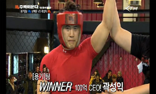 요식업 CEO로 연매출 100억원을 기록하고 있는 곽성익은 이날 소방관 남재윤과 서바이벌 배틀을 벌였다. 초반부터 하이킥으로 남재윤을 기선제압 한 곽성익은 이어 풀마운트로 점령한 뒤 연이은 안면 파운딩 공격으로 승리를 거머쥐었다.